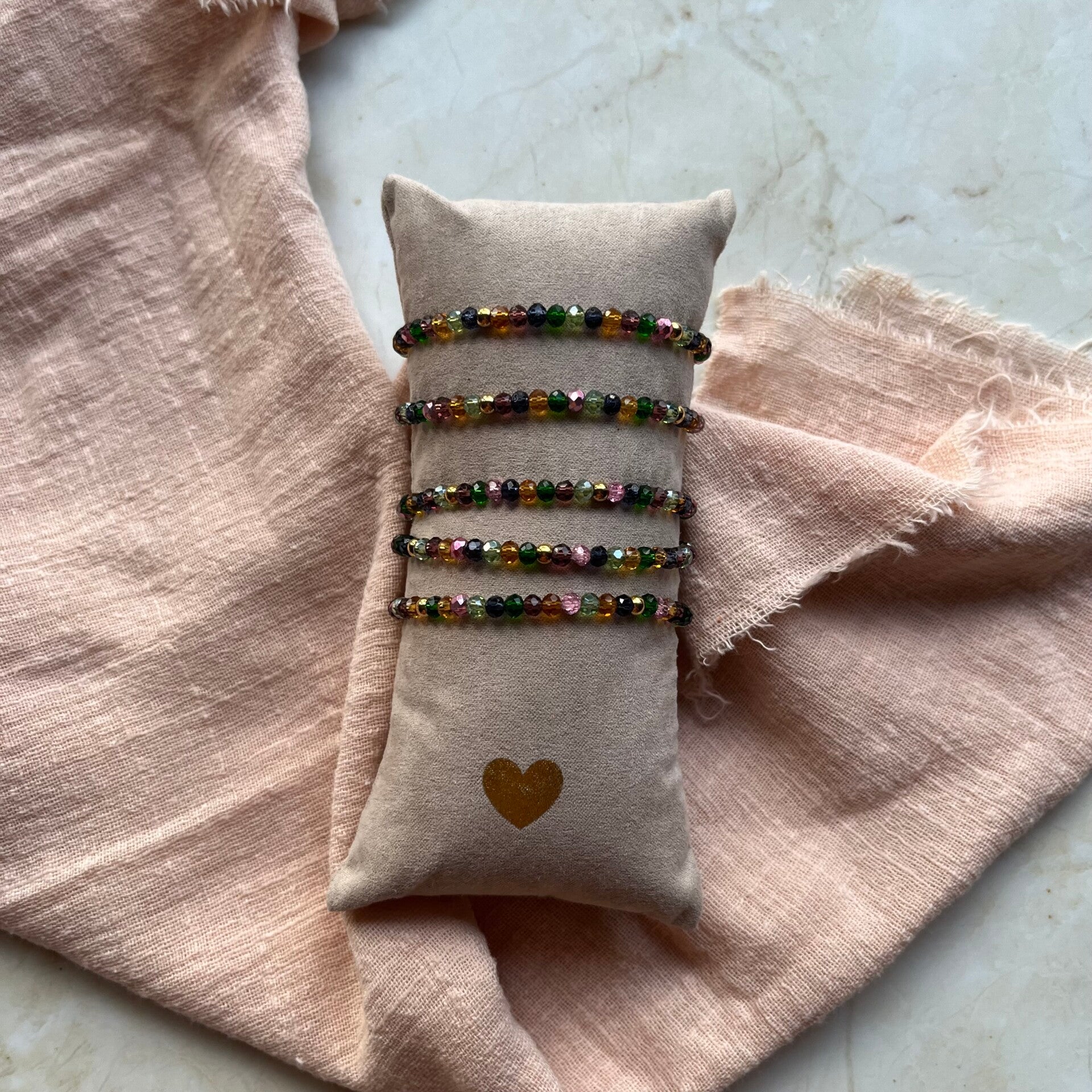 Armbandje van top facet glaskralen. In mooie winterse kleuren.